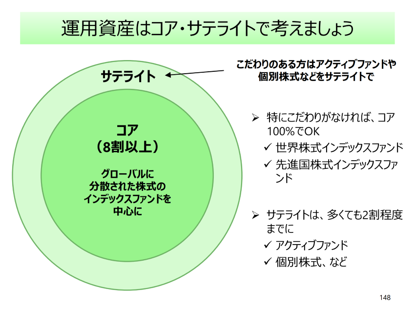 横田さん:コア・サテライト運用とは、「運用商品をコア(中核)とサテライト(衛星)に分けて運用しましょう」という運用戦略のことです。