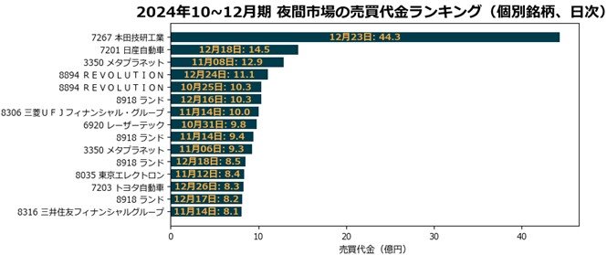 2024年10月~12月期 夜間市場の売買代金ランキング