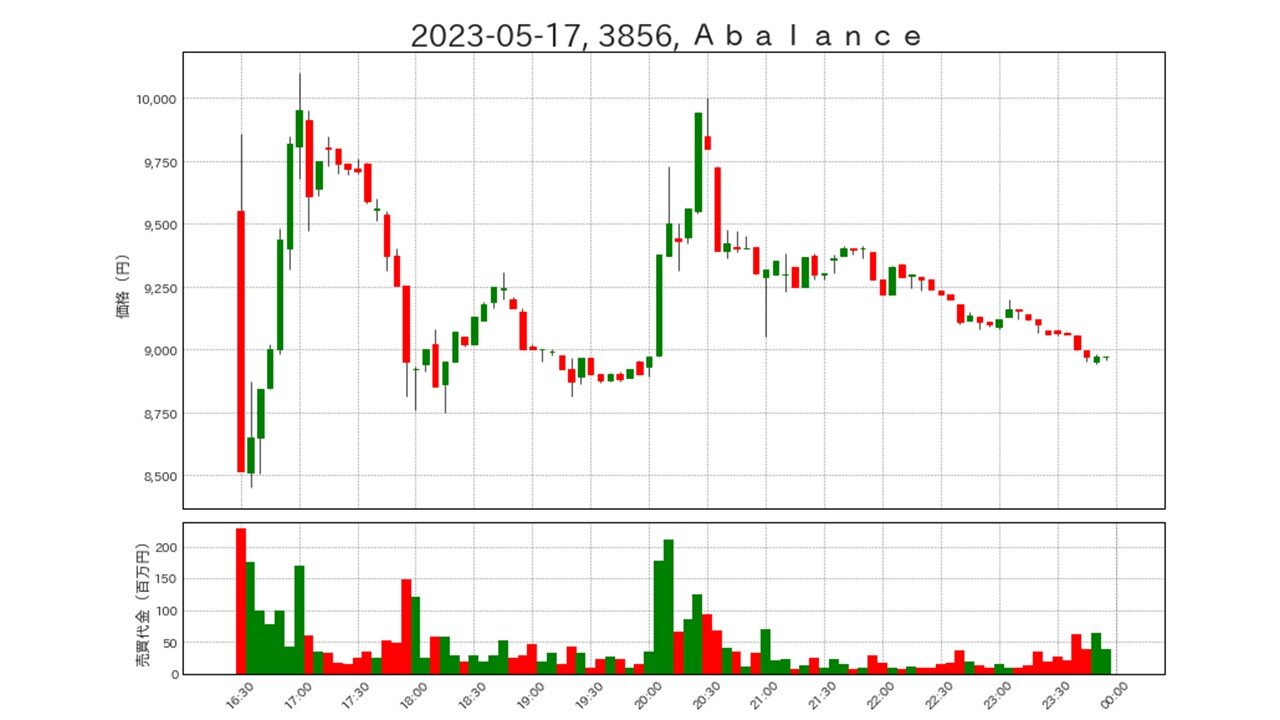 個別株に関係する情報の交錯があり、東証スタンダード市場に上場するAbalance(3856)に関連する取引において夜間取引で売買が膨らみました。同社は5月15日の取引終了後に23.6期3Q(22.7~23.3期)の決算発表を行い四半期累計純利益が前年同期比5.5倍になったことを発表しました。16日の同社株終値は13,240円(2,620円高)と急騰しましたが、その後は17日に3,000円安(ストップ安)、18日に2,010円安となりました。16日付で海外から真偽不明の売りレポートが出たことに反応したものです。17日に会社側は、当該レポートについて事実無根の内容が多いと主張するリリースを発表しています。17日の夜間取引は強弱材料が対立する中、概ね8,500~10,000円で推移し、18日の東京市場では7,240~9,270円の推移となり、夜間市場は先行して織り込む形になりました。