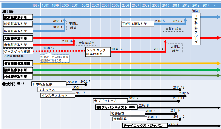 1998年まで日本株は証券取引所での取引が義務付けられていましたし、取引もネットではなく電話が基本でした。なお、この1998年は、当時の橋本内閣が金融ビッグバンという、日本の金融を世界水準に一気に追いつかせるという大胆な自由化を含む改革を行った年です。その一部として法律(当時は証券取引法、現在の金融商品取引法)の大改正も行われ、株式などの上場有価証券の取引が、証券取引所を介さずに取引をすることが可能になりました。その結果として、取引所ではない取引所的な取引施設であるPTSの設立が可能になったわけです。